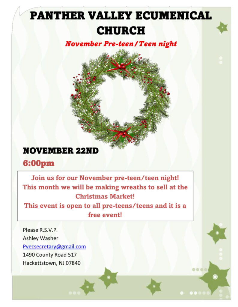 This month our teens will be decorating wreaths to sell at our December Christmas market to raise money for future activities. ALL TEENS/PRE-TEENS WELCOME! There will be food, wreaths, and decorations provided. PLEASE RSVP so we have a headcount for food!